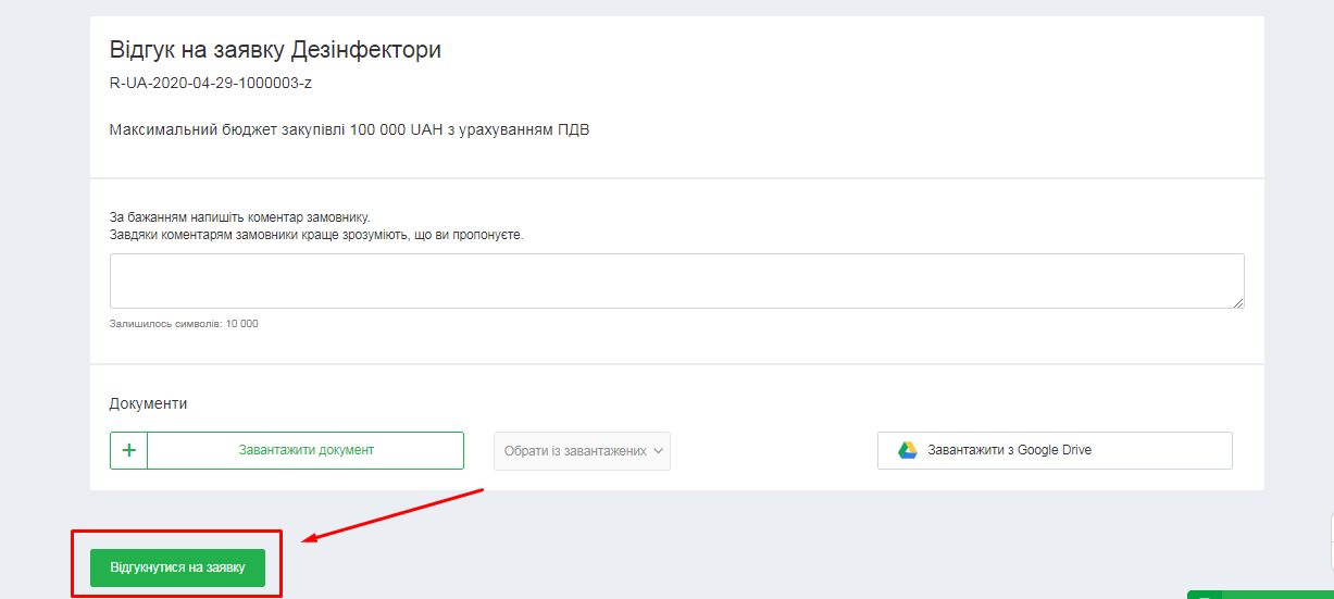 Після цього державний замовник отримає повідомлення, що ви зацікавилися його заявкою і може з вами зв’язатися, щоб уточнити деталі.