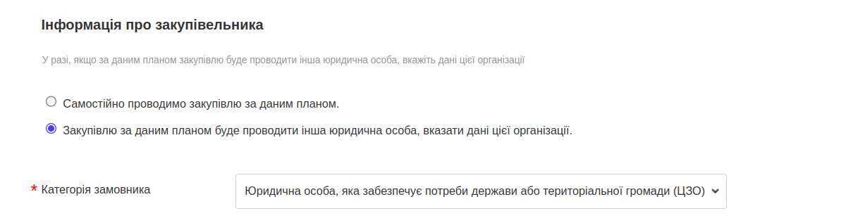 Якщо замовник хоче передати право на проведення закупівлі Централізованій закупівельній організації (ЦЗО), то він повинен буде опублікувати відповідний план закупівлі. У плані обов’язково потрібно вказати, що закупівлю буде проводити інша юридична особа та зазначити її реквізити.