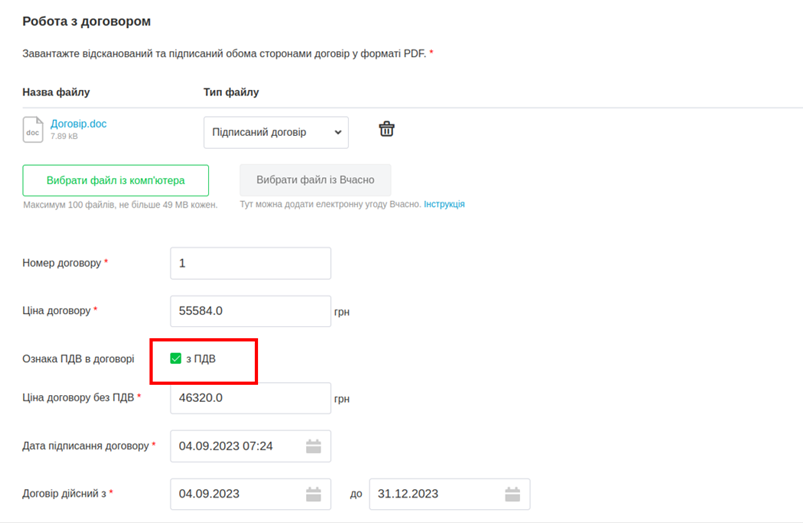 Чи є у замовника можливість змінювати ознаку ПДВ в ЗЦП при завантаженні договору?